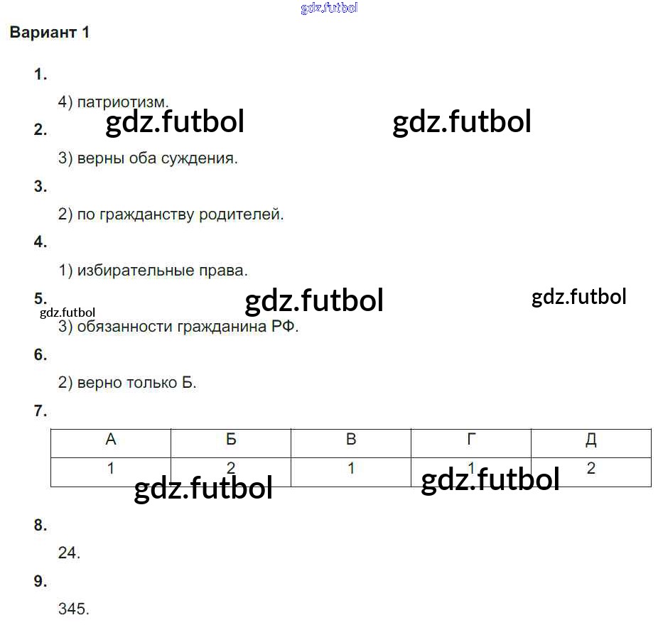 Готовые домашние задания по Обществознанию за 6 класс Лобанов Тематический контроль 2017 ФГОС - Тема "Родина" вариант-1