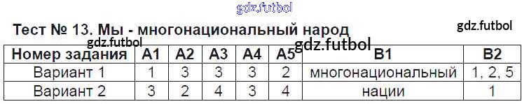 Готовые домашние задания по Обществознанию за 6 класс Поздеева Контрольно-измерительные материалы (КИМ) 2017 ФГОС - Тесты Тест №13. Мы - многонациональный народ
