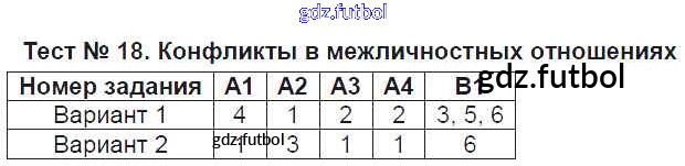 Готовые домашние задания по Обществознанию за 6 класс Поздеева Контрольно-измерительные материалы (КИМ) 2017 ФГОС - Тесты Тест №18. Конфликты в межличностных отношениях