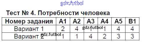 Готовые домашние задания по Обществознанию за 6 класс Поздеева Контрольно-измерительные материалы (КИМ) 2017 ФГОС - Тесты Тест №4. Потребности человека