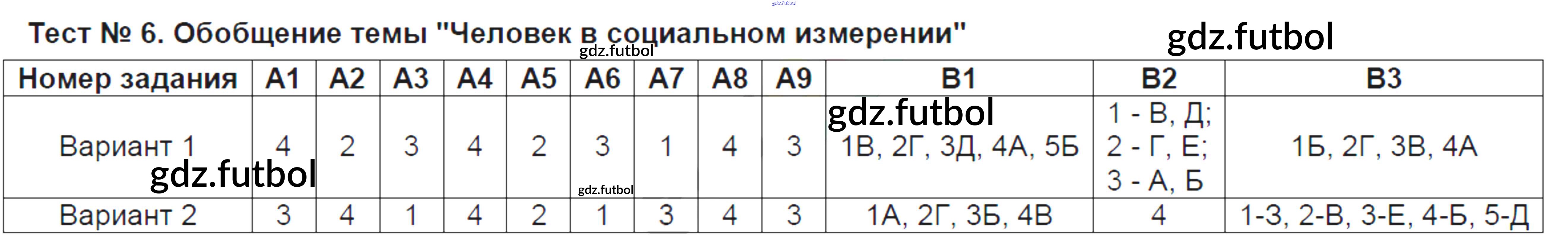 Готовые домашние задания по Обществознанию за 6 класс Поздеева Контрольно-измерительные материалы (КИМ) 2017 ФГОС - Тесты Тест №6. Обобщение темы - Человек в социальном измерении
