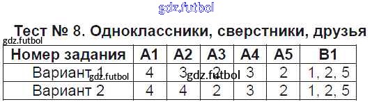 Готовые домашние задания по Обществознанию за 6 класс Поздеева Контрольно-измерительные материалы (КИМ) 2017 ФГОС - Тесты Тест №8. Одноклассники, сверстники, друзья