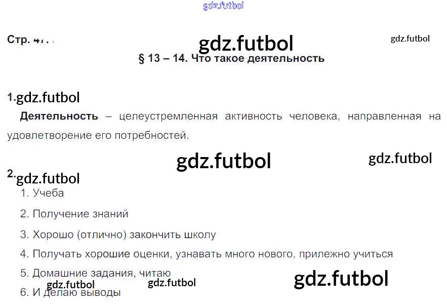 Готовые домашние задания по Обществознанию за 6 класс Соболева Рабочая тетрадь УМК 2019 ФГОС - § 13-14. Что такое деятельность стр. 47
