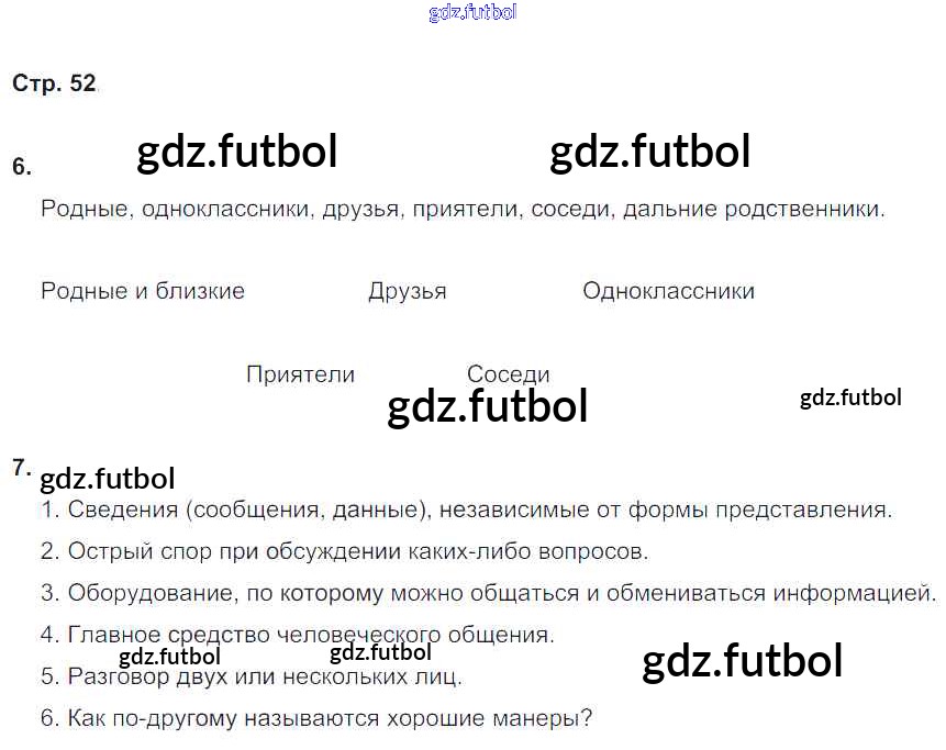 Готовые домашние задания по Обществознанию за 6 класс Соболева Рабочая тетрадь УМК 2019 ФГОС - § 15. Как общаются люди стр. 52