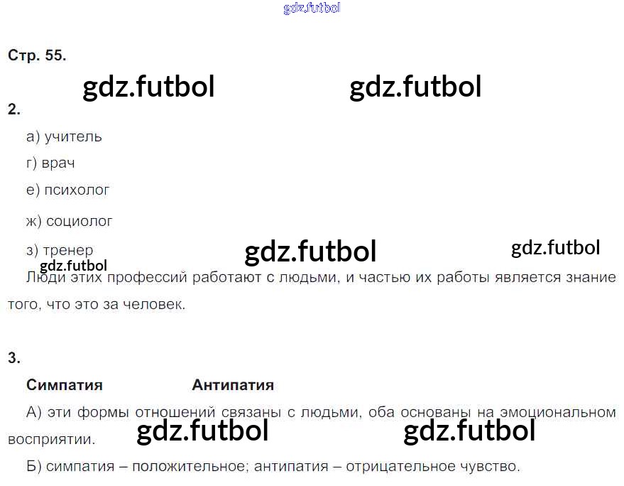 Готовые домашние задания по Обществознанию за 6 класс Соболева Рабочая тетрадь УМК 2019 ФГОС - § 16-17. Отношения между людьми стр. 55