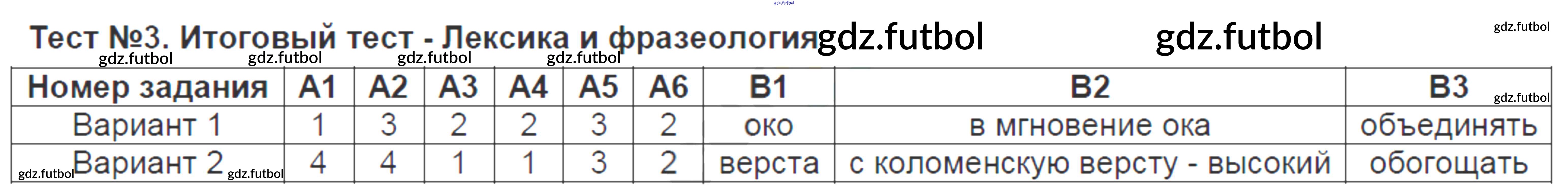 Готовые домашние задания по Русскому языку за 6 класс Аксенова Контрольно-измерительные материалы (КИМ) 2014 ФГОС - Тесты Тест-3. Итоговый тест - Лексика и фразеология