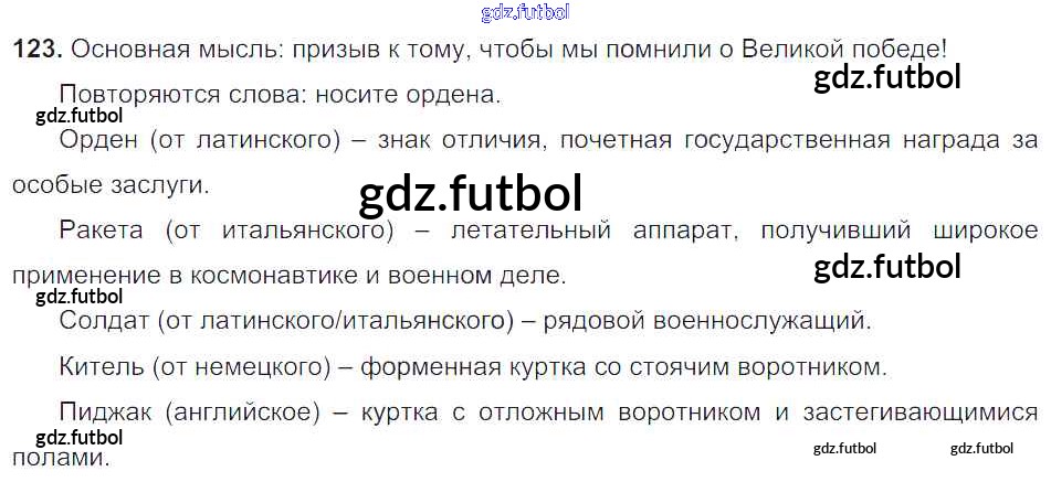 Готовые домашние задания по Русскому языку за 6 класс Баранов Учебник 2015, 2022 ФГОС - Упражнения 123