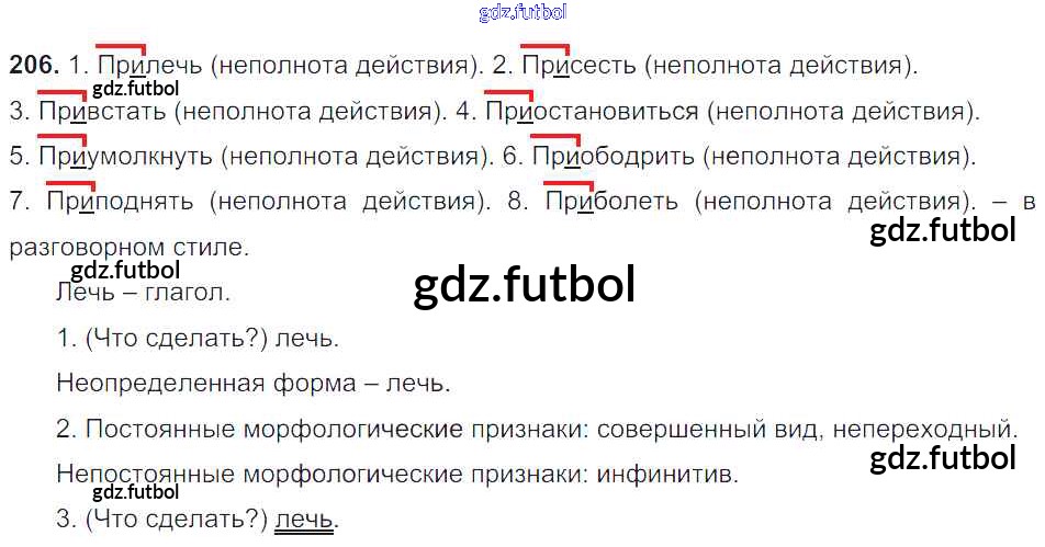 Готовые домашние задания по Русскому языку за 6 класс Баранов Учебник 2015, 2022 ФГОС - Упражнения 206