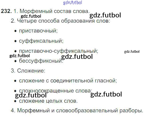 Готовые домашние задания по Русскому языку за 6 класс Баранов Учебник 2015, 2022 ФГОС - Упражнения 232