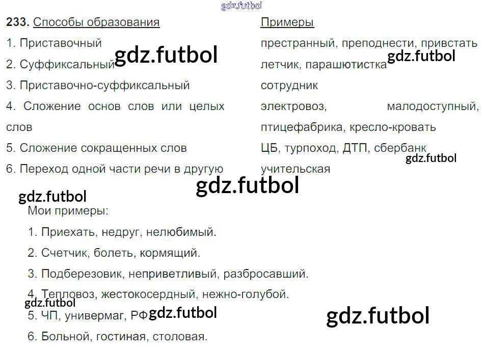 Готовые домашние задания по Русскому языку за 6 класс Баранов Учебник 2015, 2022 ФГОС - Упражнения 233