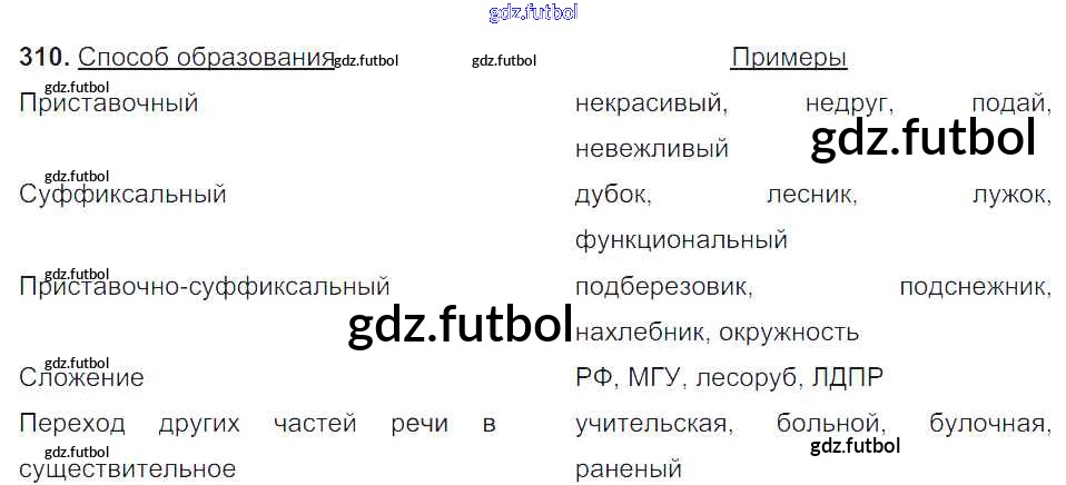 Готовые домашние задания по Русскому языку за 6 класс Баранов Учебник 2015, 2022 ФГОС - Упражнения 310