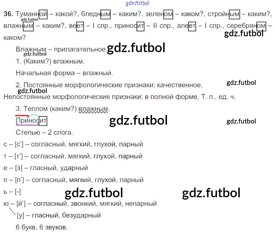 Готовые домашние задания по Русскому языку за 6 класс Баранов Учебник 2015, 2022 ФГОС - Упражнения 36