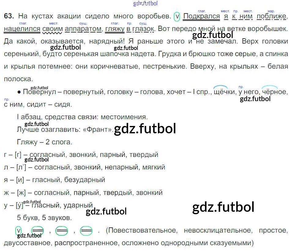 Готовые домашние задания по Русскому языку за 6 класс Баранов Учебник 2015, 2022 ФГОС - Упражнения 63