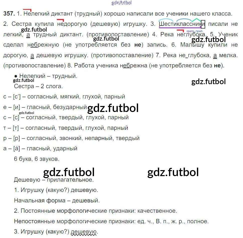 Готовые домашние задания по Русскому языку за 6 класс Баранов Учебник 2015, 2022 ФГОС - Упражнения 357