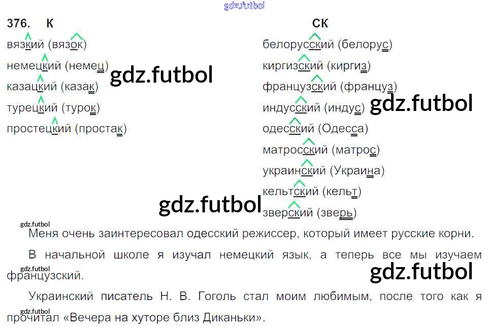 Готовые домашние задания по Русскому языку за 6 класс Баранов Учебник 2015, 2022 ФГОС - Упражнения 376