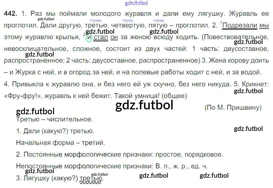 Готовые домашние задания по Русскому языку за 6 класс Баранов Учебник 2015, 2022 ФГОС - Упражнения 442