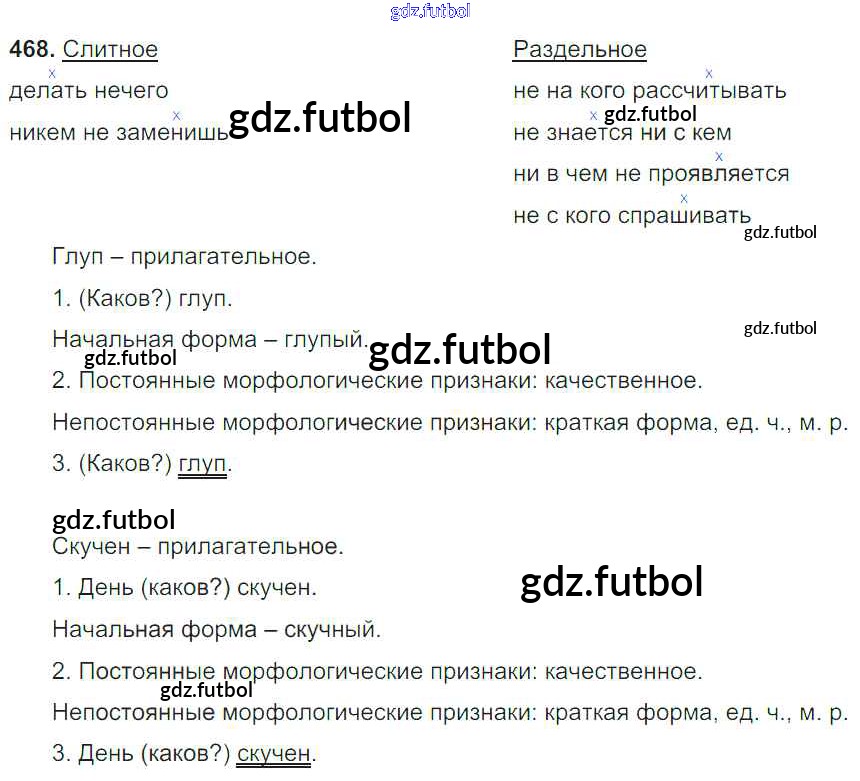 Готовые домашние задания по Русскому языку за 6 класс Баранов Учебник 2015, 2022 ФГОС - Упражнения 468