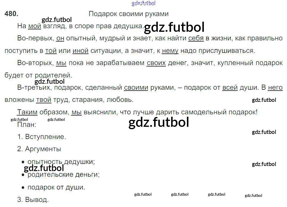 Готовые домашние задания по Русскому языку за 6 класс Баранов Учебник 2015, 2022 ФГОС - Упражнения 480
