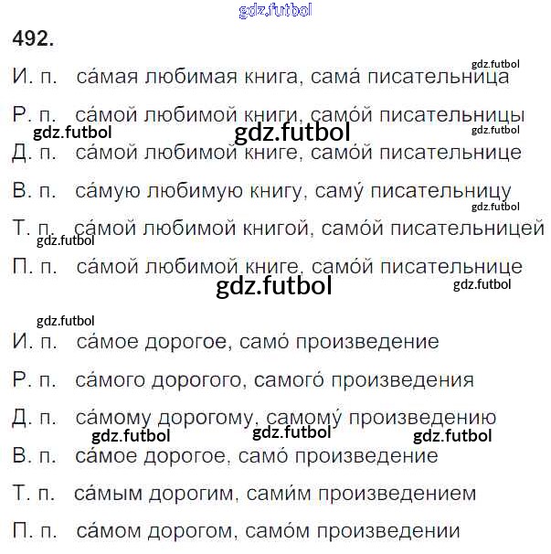 Готовые домашние задания по Русскому языку за 6 класс Баранов Учебник 2015, 2022 ФГОС - Упражнения 492