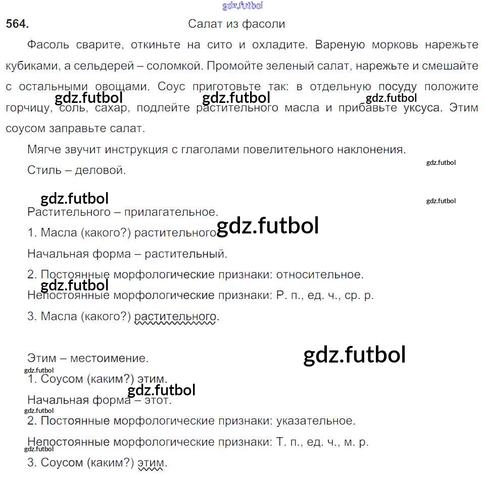 Готовые домашние задания по Русскому языку за 6 класс Баранов Учебник 2015, 2022 ФГОС - Упражнения 564