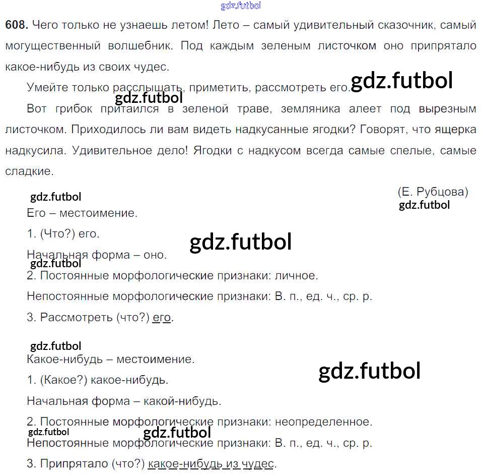 Готовые домашние задания по Русскому языку за 6 класс Баранов Учебник 2015, 2022 ФГОС - Упражнения 608