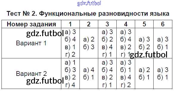 Готовые домашние задания по Русскому языку за 6 класс Каськова Тематические тесты УМК 2016 ФГОС - Тесты Тест №2. Функциональные разновидности языка