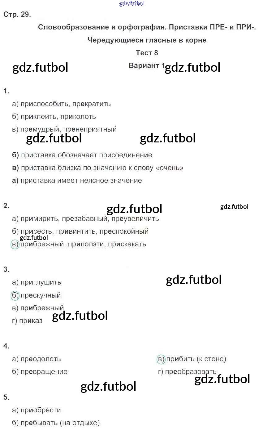 Готовые домашние задания по Русскому языку за 6 класс Книгина Тесты 2013 ФГОС - Часть 1. Страницы 29