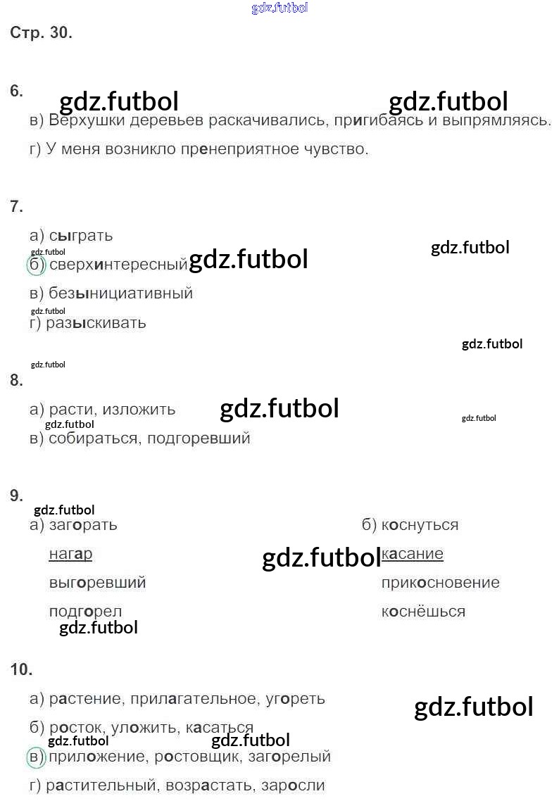 Готовые домашние задания по Русскому языку за 6 класс Книгина Тесты 2013 ФГОС - Часть 1. Страницы 30