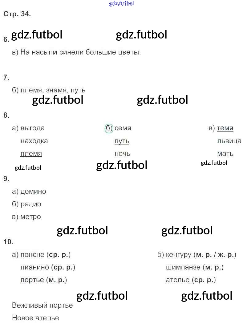 Готовые домашние задания по Русскому языку за 6 класс Книгина Тесты 2013 ФГОС - Часть 1. Страницы 34