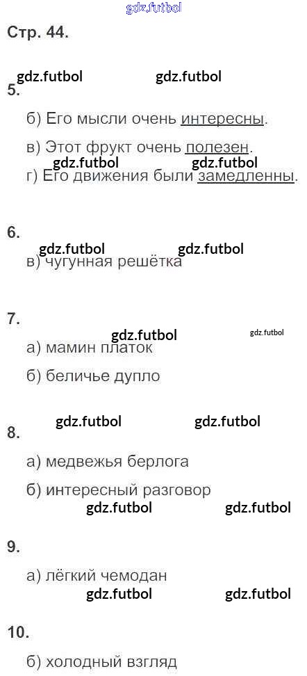 Готовые домашние задания по Русскому языку за 6 класс Книгина Тесты 2013 ФГОС - Часть 1. Страницы 44
