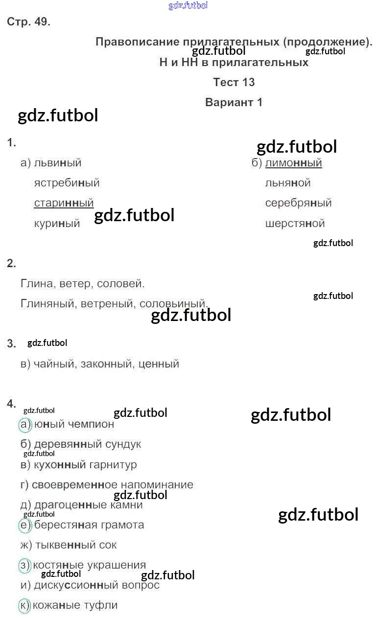 Готовые домашние задания по Русскому языку за 6 класс Книгина Тесты 2013 ФГОС - Часть 1. Страницы 49