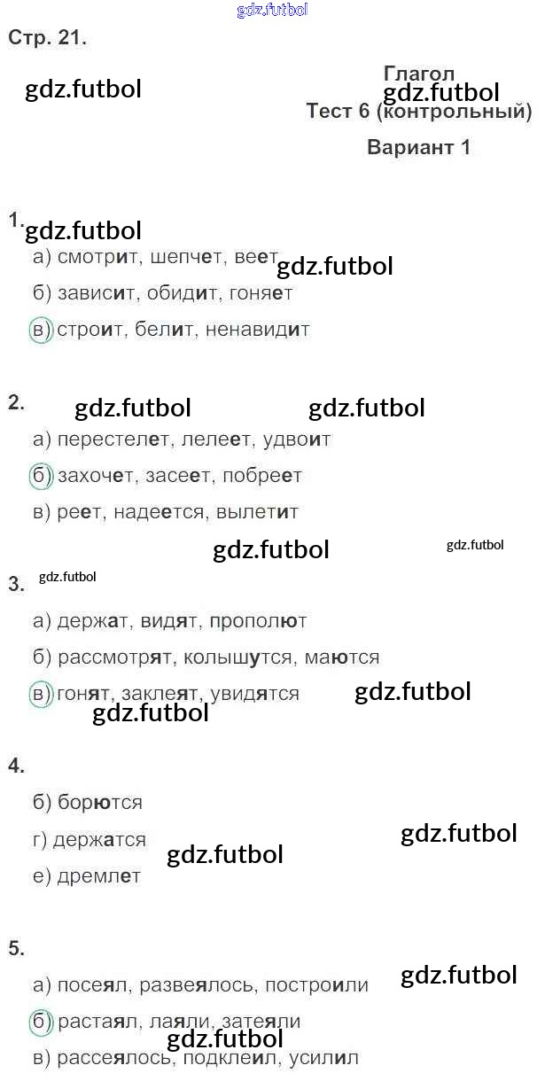 Готовые домашние задания по Русскому языку за 6 класс Книгина Тесты 2013 ФГОС - Часть 2. Страницы 21