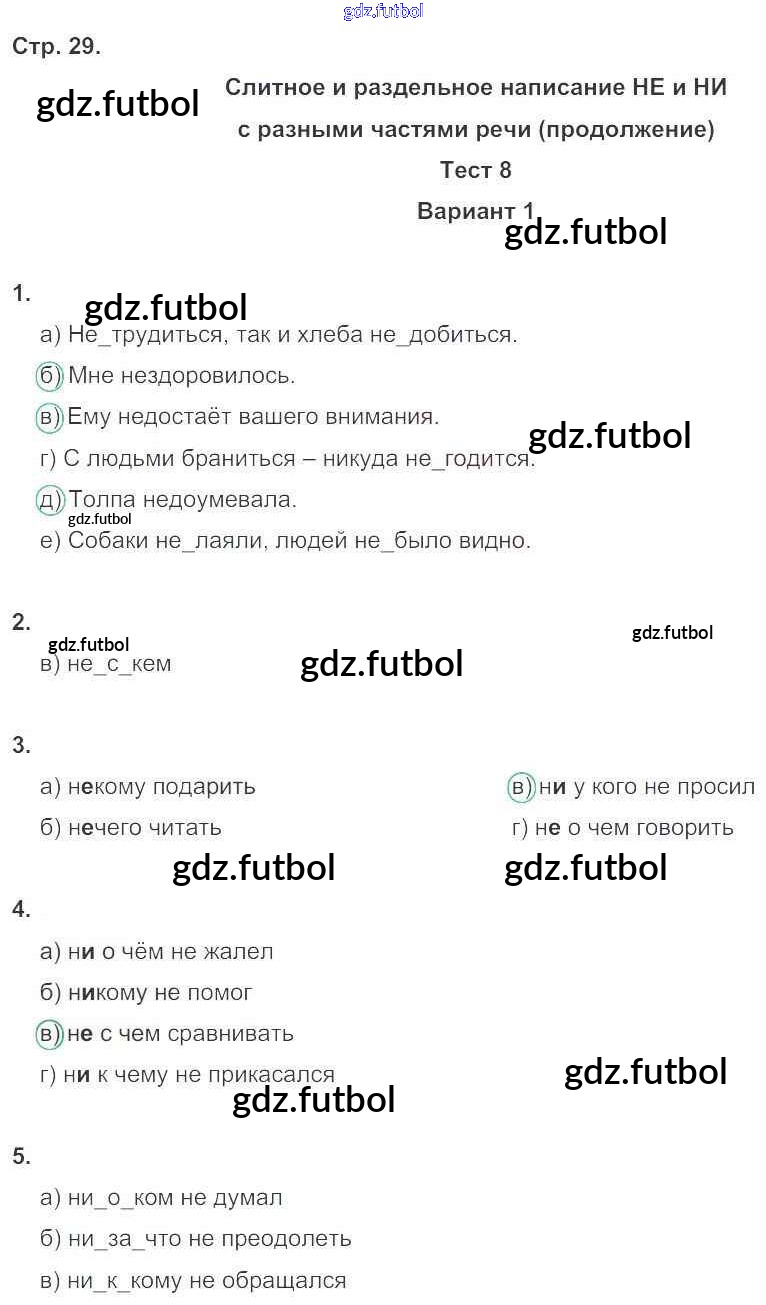 Готовые домашние задания по Русскому языку за 6 класс Книгина Тесты 2013 ФГОС - Часть 2. Страницы 29