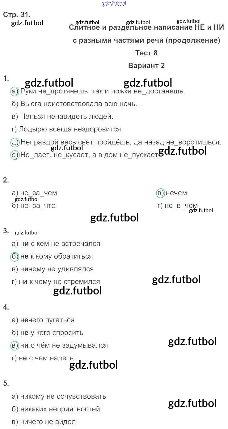 Готовые домашние задания по Русскому языку за 6 класс Книгина Тесты 2013 ФГОС - Часть 2. Страницы 31