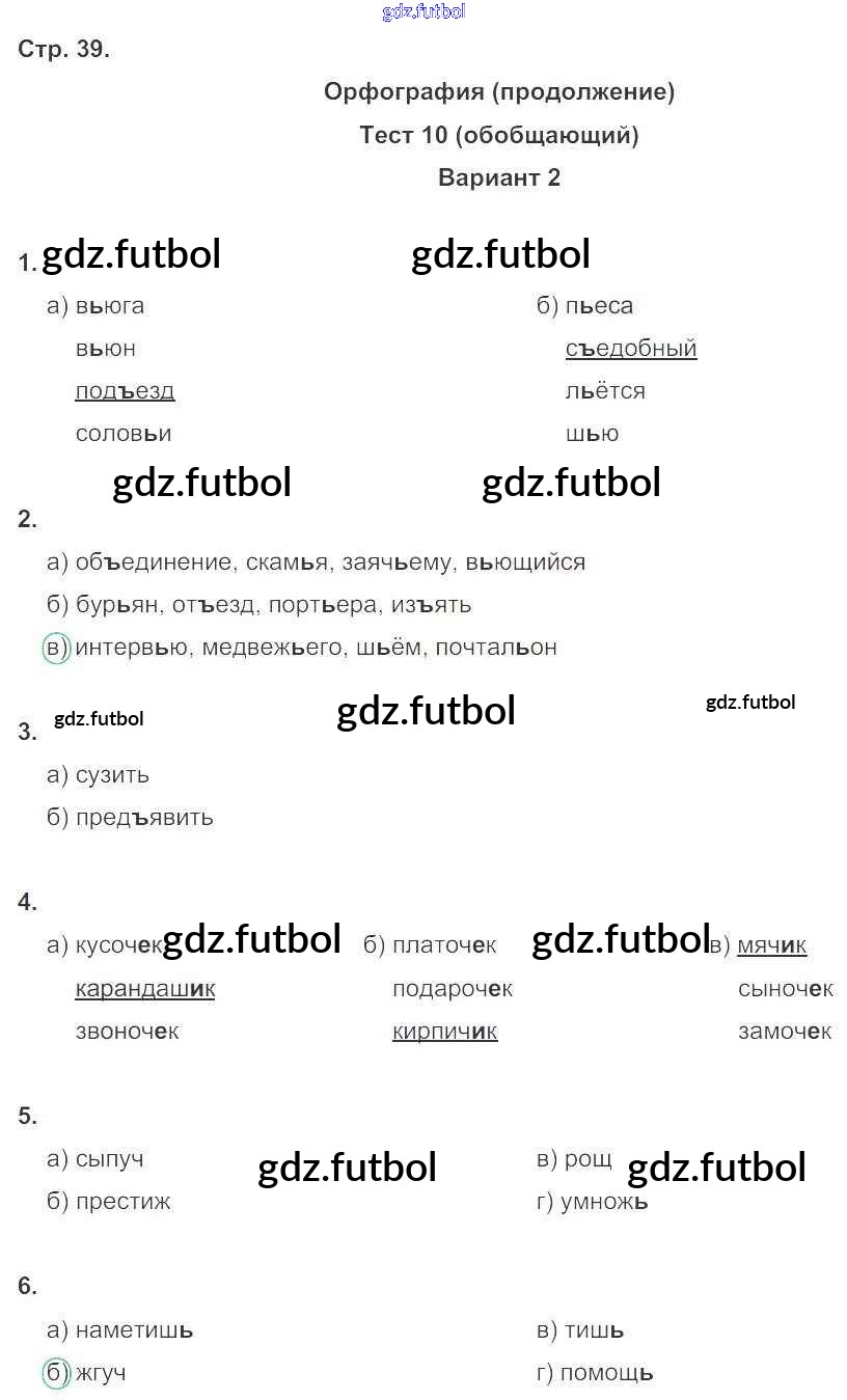Готовые домашние задания по Русскому языку за 6 класс Книгина Тесты 2013 ФГОС - Часть 2. Страницы 39