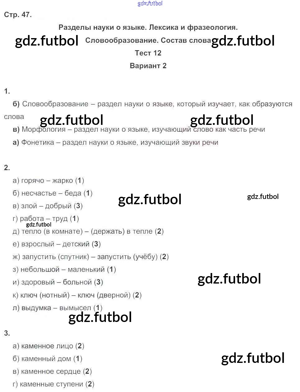 Готовые домашние задания по Русскому языку за 6 класс Книгина Тесты 2013 ФГОС - Часть 2. Страницы 47