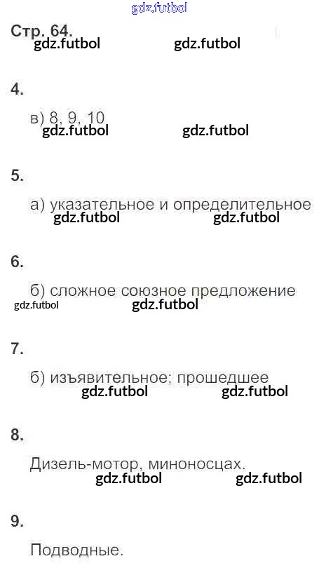 Готовые домашние задания по Русскому языку за 6 класс Книгина Тесты 2013 ФГОС - Часть 2. Страницы 64
