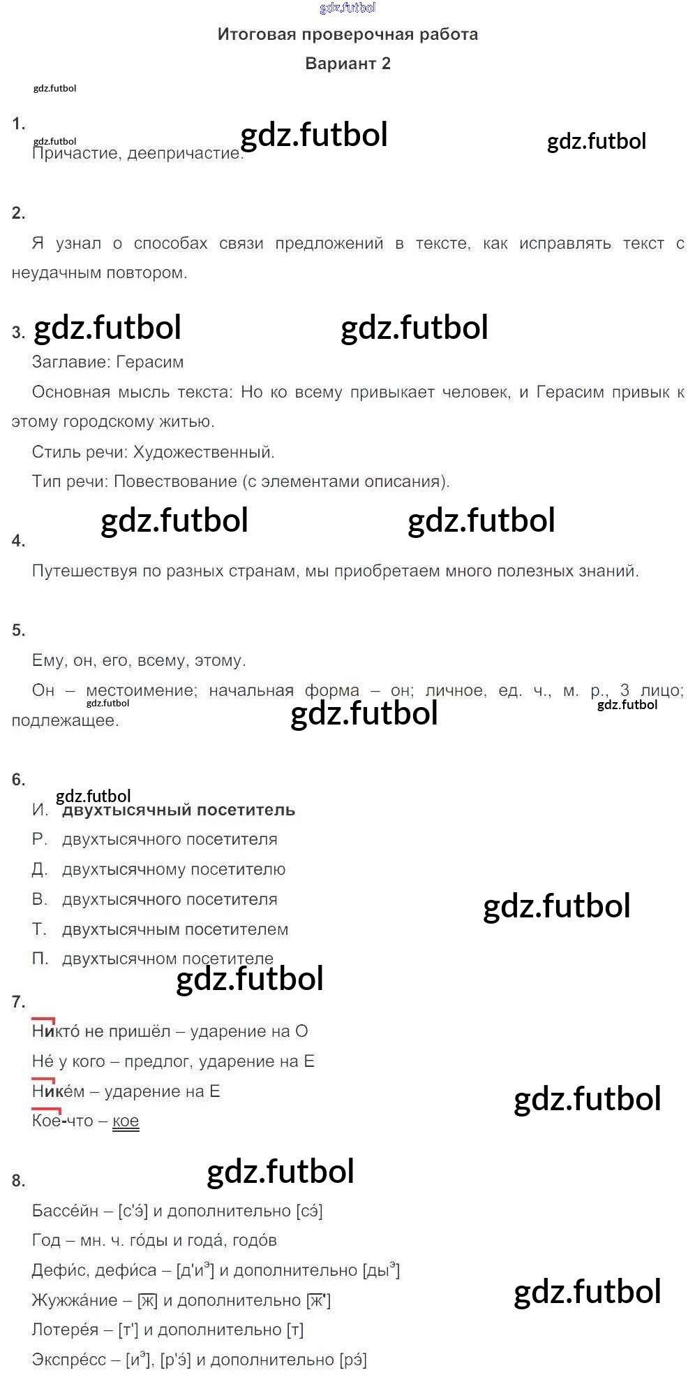 Готовые домашние задания по Русскому языку за 6 класс Львов Тетрадь для оценки качества знаний Вертикаль 2015 ФГОС - Итоговая проверочная работа Вариант-2