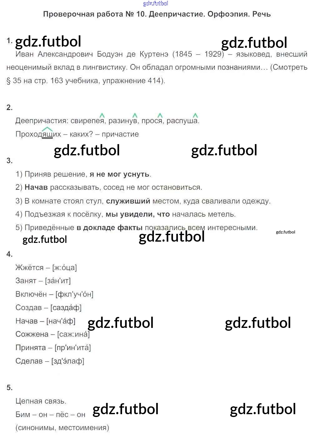 Готовые домашние задания по Русскому языку за 6 класс Львов Тетрадь для оценки качества знаний Вертикаль 2015 ФГОС - Проверочные работы ПР №10. Деепричастие. Орфоэпия. Речь