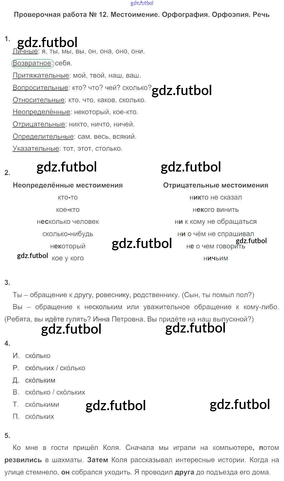 Готовые домашние задания по Русскому языку за 6 класс Львов Тетрадь для оценки качества знаний Вертикаль 2015 ФГОС - Проверочные работы ПР №12. Местоимение. Орфография. Орфоэпия. Речь