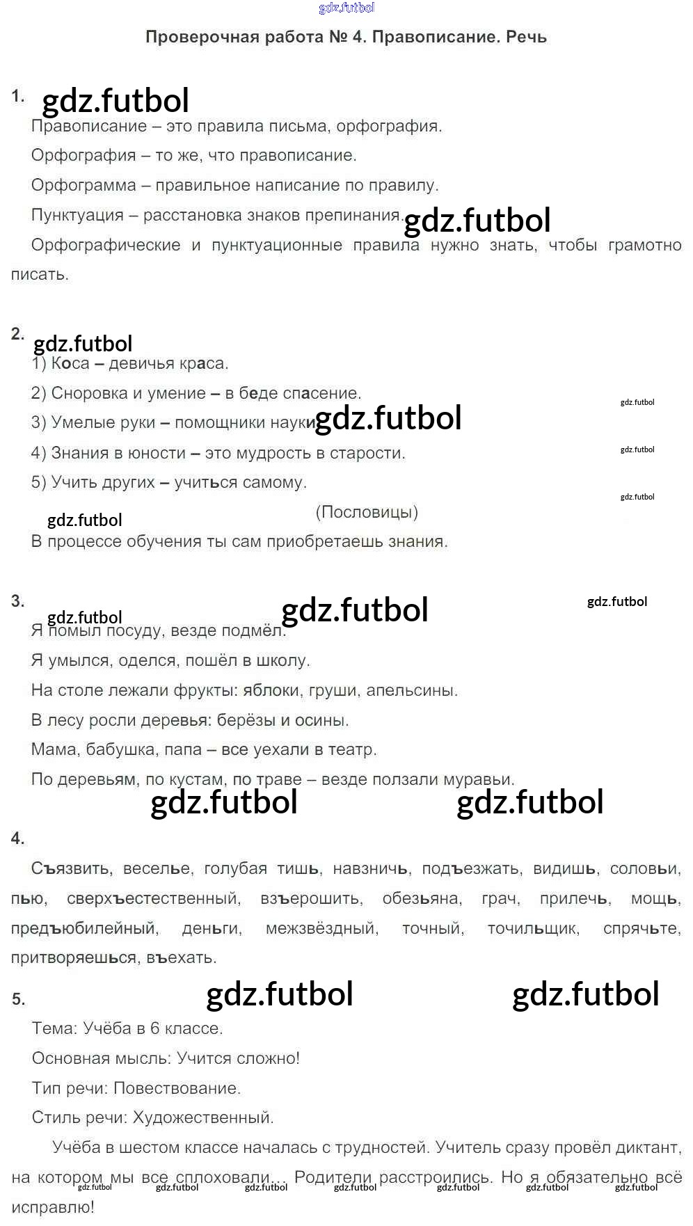 Готовые домашние задания по Русскому языку за 6 класс Львов Тетрадь для оценки качества знаний Вертикаль 2015 ФГОС - Проверочные работы ПР №4. Правописание. Речь