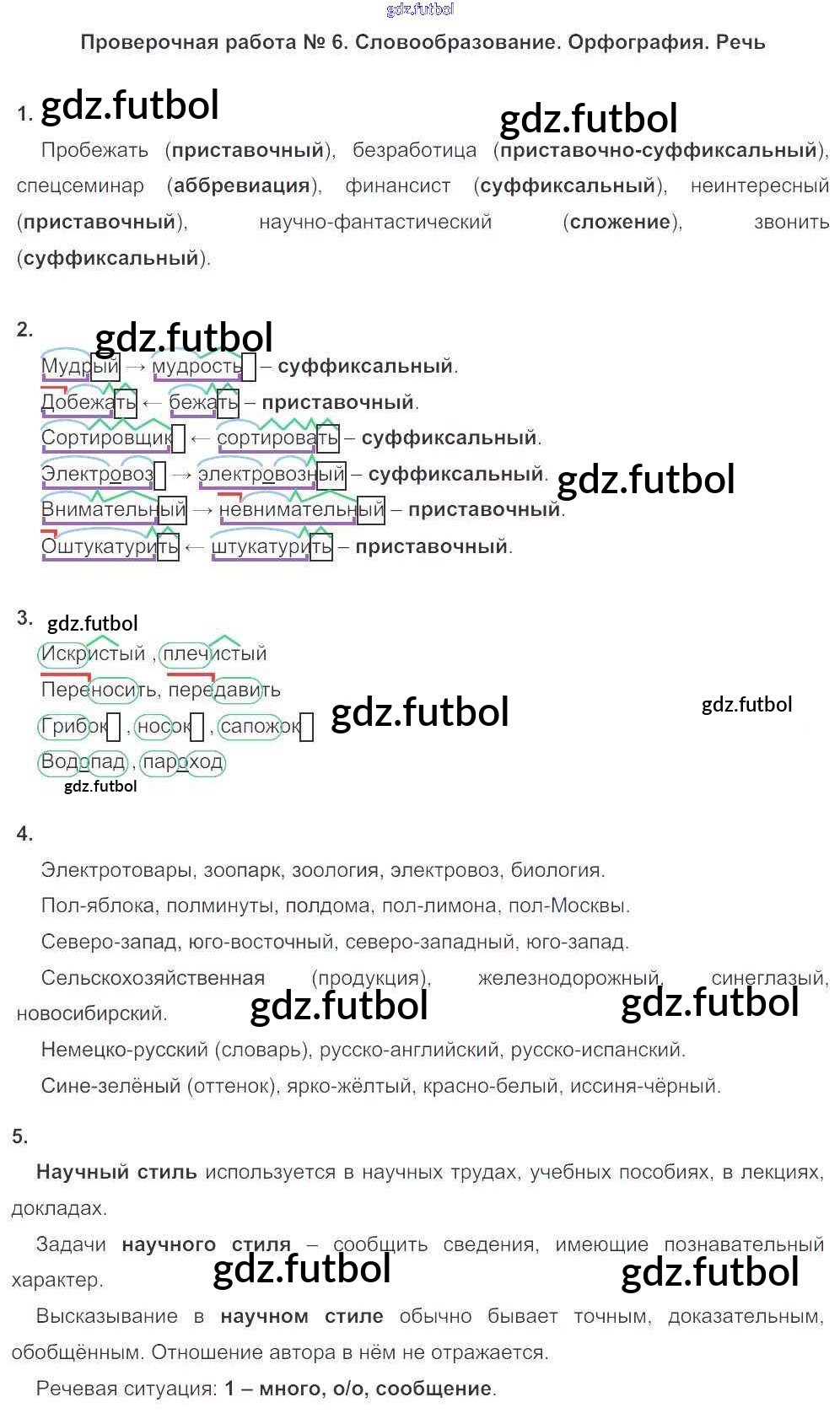 Готовые домашние задания по Русскому языку за 6 класс Львов Тетрадь для оценки качества знаний Вертикаль 2015 ФГОС - Проверочные работы ПР №6. Слообразование. Орфография. Речь