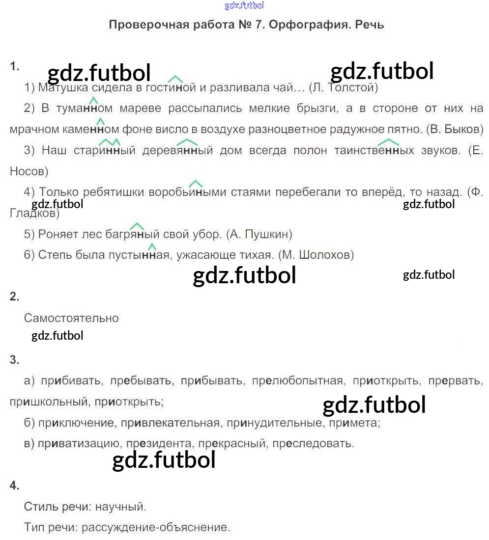 Готовые домашние задания по Русскому языку за 6 класс Львов Тетрадь для оценки качества знаний Вертикаль 2015 ФГОС - Проверочные работы ПР №7. Орфография. Речь