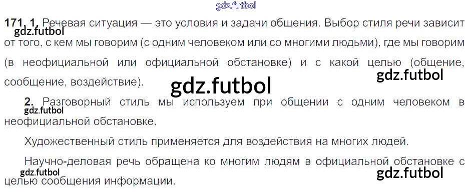 Готовые домашние задания по Русскому языку за 6 класс Разумовская Учебник Вертикаль 2016 ФГОС - Упражнения 171
