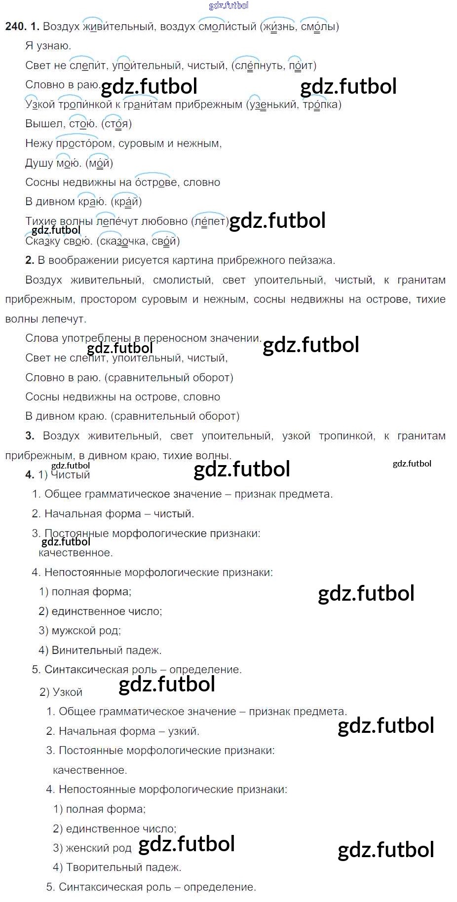 Готовые домашние задания по Русскому языку за 6 класс Разумовская Учебник Вертикаль 2016 ФГОС - Упражнения 240