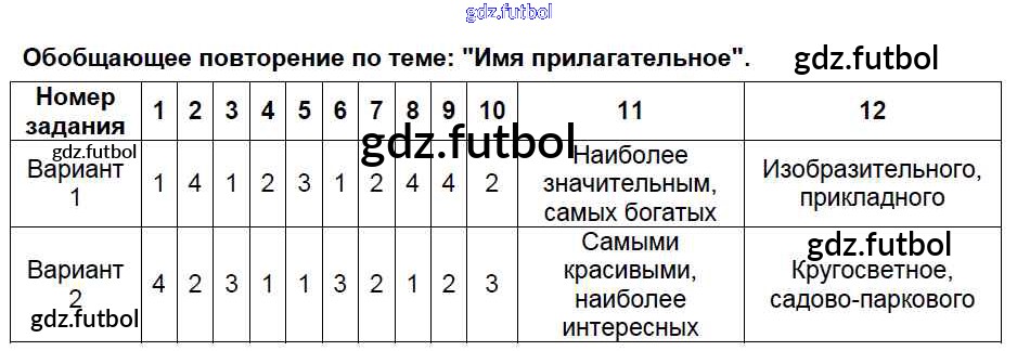 Готовые домашние задания по Русскому языку за 6 класс Селезнева Тесты УМК 2014 ФГОС - Часть 2. Тесты Тест-6. Обобщающее повторение по теме Имя прилагательное