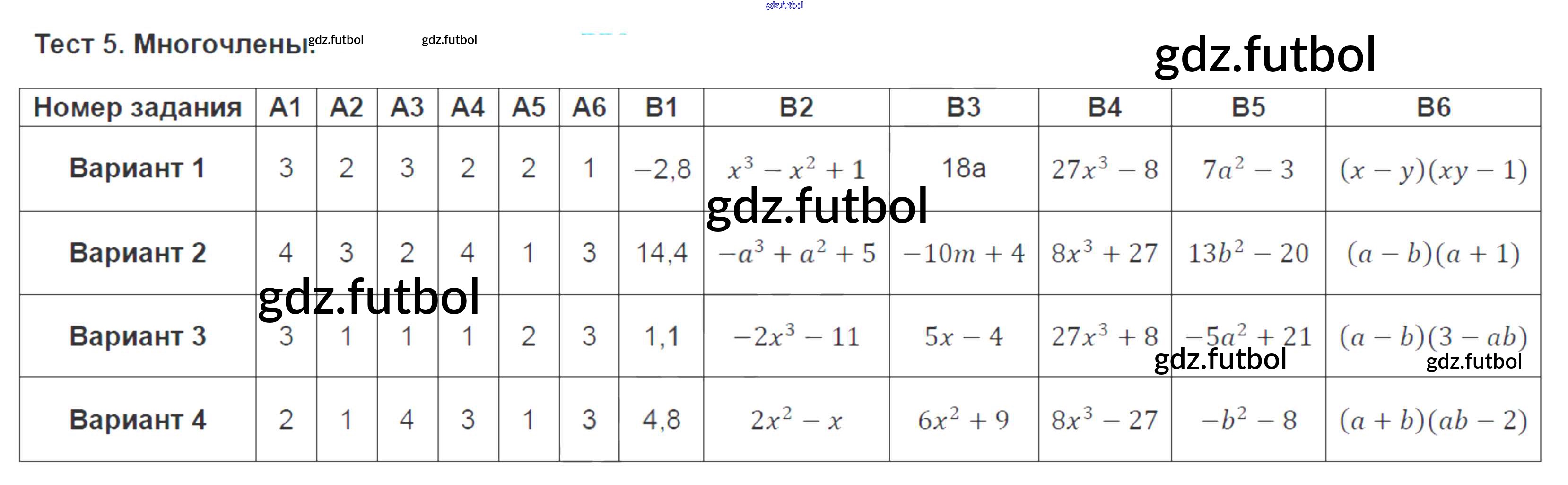 Готовые решения задач (ГДЗ) по Алгебре седьмой класс Чулков Тематические тесты МГУ - школе 2017 ФГОС - Тесты 5 доступны для различных учебных материалов. У нас вы сможете найти авторские решения для всех пособий, предназначенных для школьников. Не секрет, что в настоящее время многие школьники прибегают к использованию готовых решебников, ведь они содержат подробные ответы для каждого упражнения, представленного в учебнике.