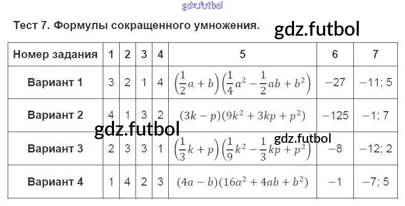 Готовые решения задач (ГДЗ) по Алгебре седьмой класс Дудницын, Кронгауз Тематические тесты 2011 ФГОС - Тесты 7 доступны для различных учебных материалов. У нас вы сможете найти авторские решения для всех пособий, предназначенных для школьников. Не секрет, что в настоящее время многие школьники прибегают к использованию готовых решебников, ведь они содержат подробные ответы для каждого упражнения, представленного в учебнике.