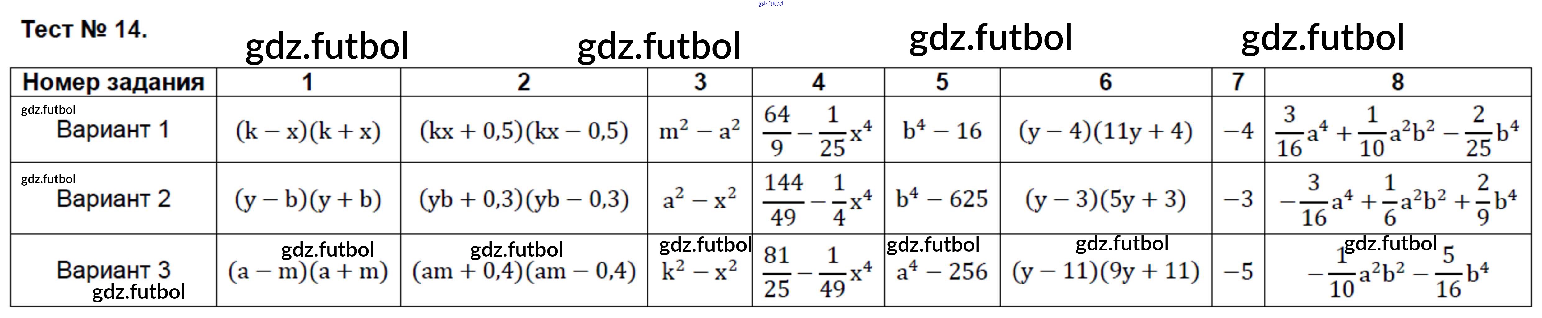 Готовые домашние задания по Алгебре за 7 класс Глазков Контрольно-измерительные материалы (КИМ) 2014 ФГОС - Тесты 14