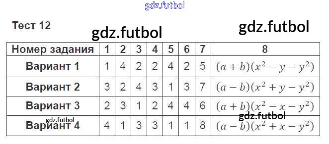 Готовые решения задач (ГДЗ) по Алгебре седьмой класс Глазков, Гаиашвили Тесты УМК 2011 ФГОС - Тесты 12 доступны для различных учебных материалов. У нас вы сможете найти авторские решения для всех пособий, предназначенных для школьников. Не секрет, что в настоящее время многие школьники прибегают к использованию готовых решебников, ведь они содержат подробные ответы для каждого упражнения, представленного в учебнике.